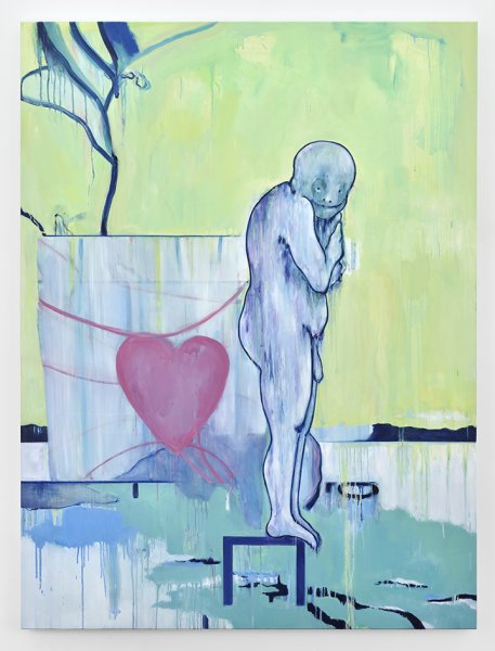 "I stretch man, from the first cave paintings to the species of the future. The one I paint has no real age, gender or ethnicity, but he has withstood natural disasters. He is quite primitive in his pose and almost translucent because of everything he has gone through: he is a survivor," says the artist. Aplomb, which is in the Pinault Collection, seems to transcribe this act of survival.