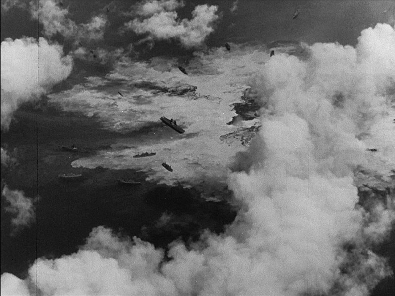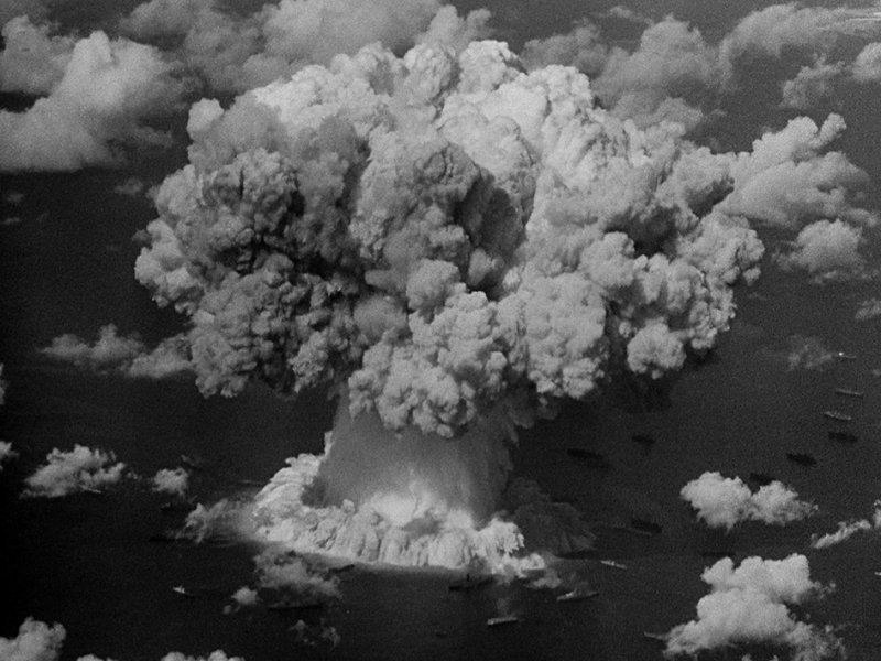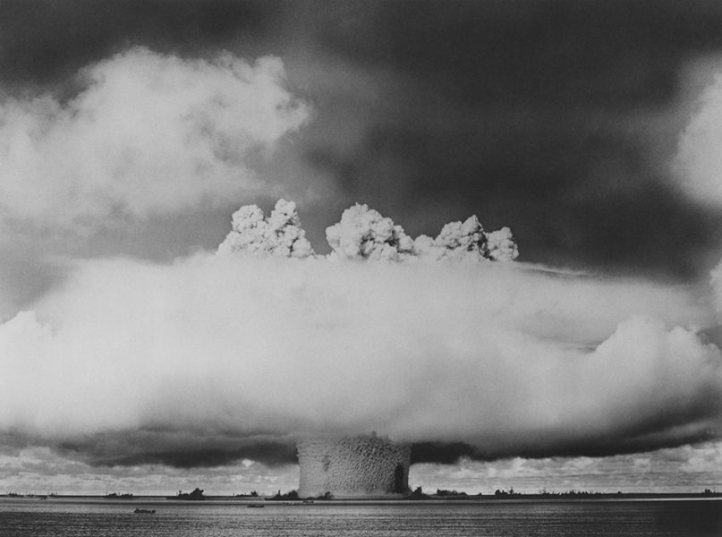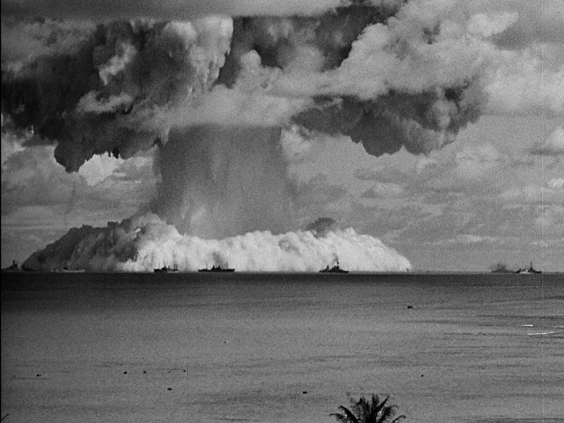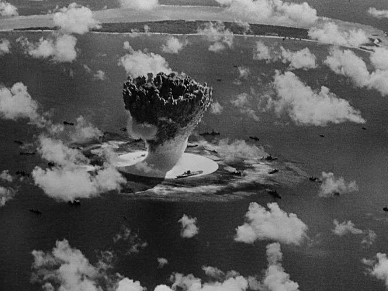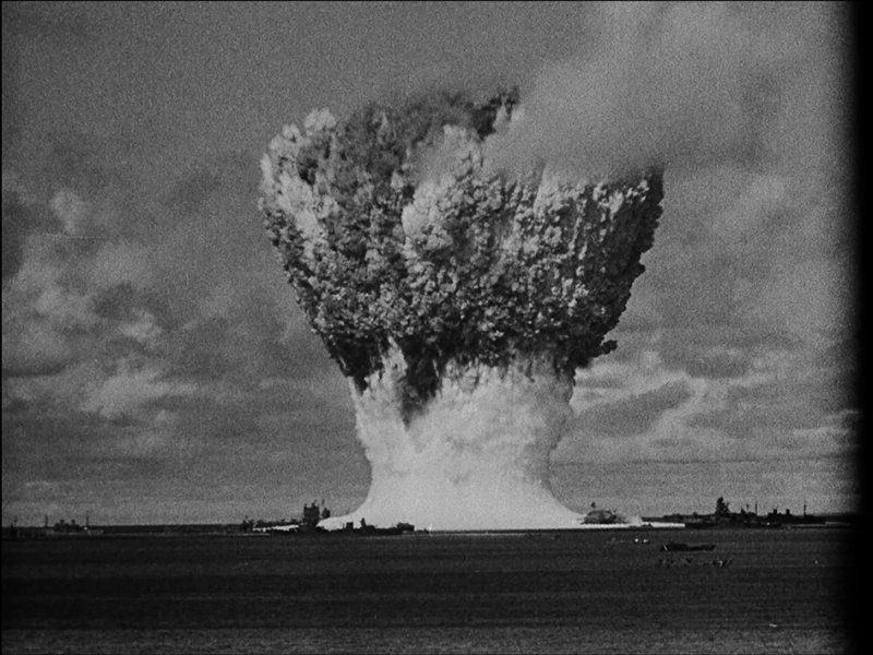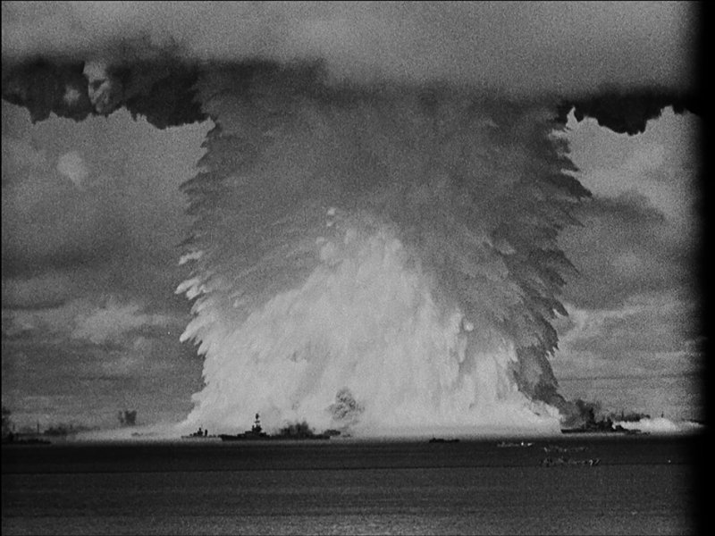 The film Crossroads documents the first military test on the Bikini Atoll and the underwater nuclear explosion that took place there on 25 July 1946. Based on United States government's footage, the film shows the explosion under 27 different angles provided by cameras on land, on boats and aboard planes.