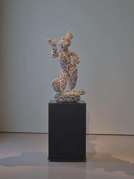 Goofy, a bronze sculpture that takes realistic details of crustaceans to an extreme, is a fantasised depiction of the anthropomorphic dog Dingo, Mickey Mouse's best friend. It belongs to a series of Damien Hirst’s works based on Disney characters, including Mickey and The Collector with Friend, which ironically pass for ancient sculptures extracted from the seabed.