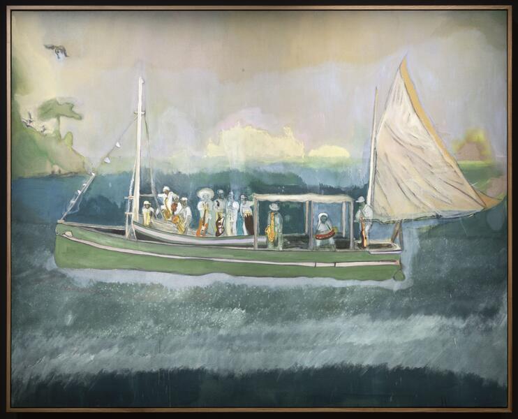 The title of this piece refers to the song Dat Soca Boat, released in 1979 by Shadow, one of Trinidad’s main soca bands who helped create this modern form of calypso. In this song, the singer promises not to let “that soca boat” sink. Doig visualises this call in the painting. The artist worked for a long time in Trinidadin the Caribbean, where he spent part of his childhood before returning to London (England). His ethereal painting evokes a feeling of nostalgia, the blurred, floating quality of the brushwork suggesting the faraway sound of musicians sailing away from shore.