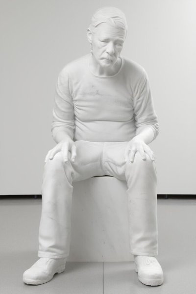 Taking a drug addicted man from the street as a model, Charles Ray ren-ders, through the pose and the density of the sculpture, the very life of the man represented: the waiting, the weight of a difficult existence, age, destitution, solitude. The character dis-plays a certain embarrassment, his attitude seems awkward, worried. Without any other attribute, context, or narrative, the work manages, through its mass, its monumentality, its altered scale, its recourse to the realism of details as well as their stylization, to render, with great restraint, the pathos of this human destiny, erected as a universal figure.