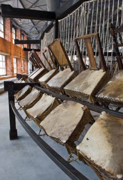 Wood, metal, chairs, beds, cowhide, ropes, objects