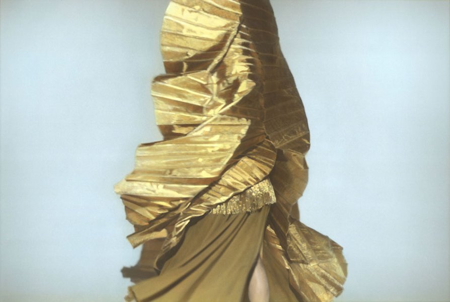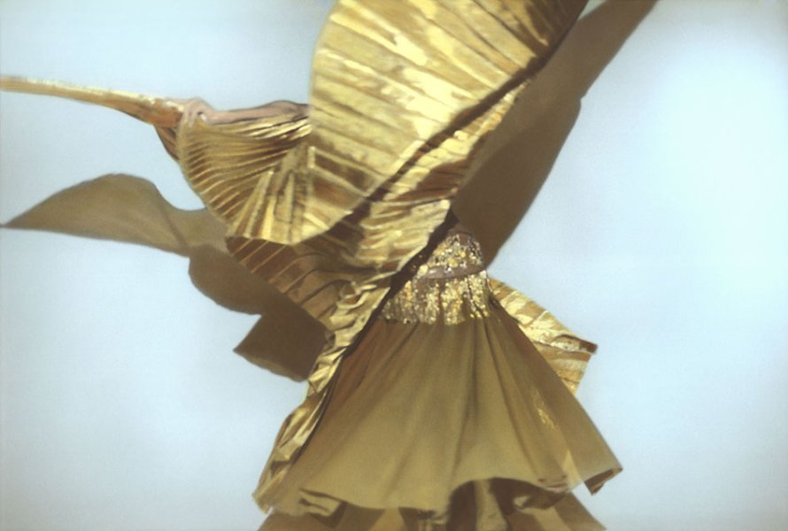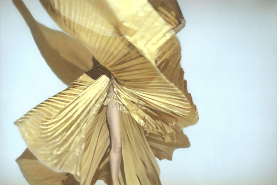 This sequence belongs to the series The Last Dance, which stages the swan song of the Arab belly dance, whose gradual disappearance in Egypt is lamented by the Egyptian photographer Youssef Nabil. The nudity and sensuality of the dancer's body merges with the shimmering drapery, a poetic metaphor for the disgrace of a tradition once respected in Egypt.
