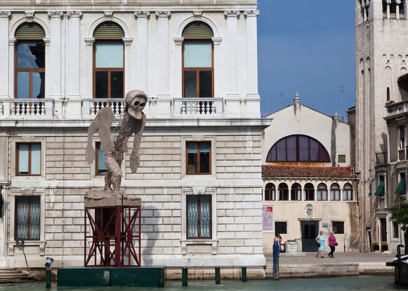 Commissioned by François Pinault for the "Le Monde vous appartient" (“The World Belongs to You”) exhibition at the Palazzo Grassi, L’Homme Pressé (Man in a Hurry) represents a blank giant with a hybrid appearance between man, monster and robot, advancing at a decisive pace. This colossal statue, almost eight meters high, seems to draw its sense of unstoppable movement from its incompleteness: the metal structure is visible, its contours are deformed but in some places highly detailed.