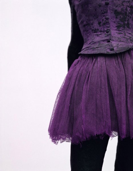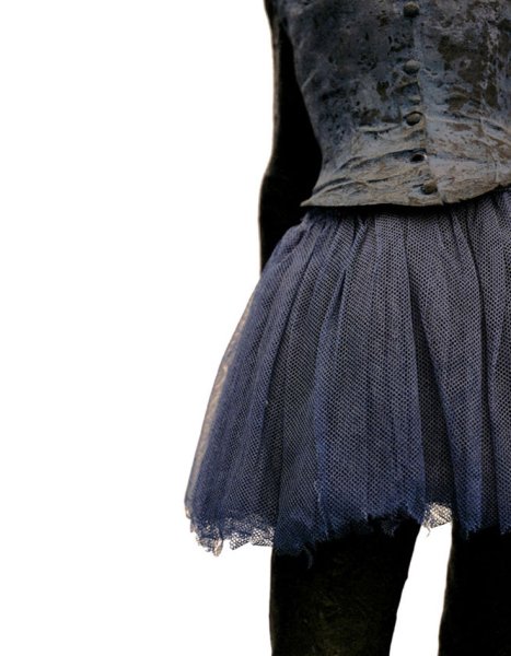 A corseted bust seen from the front, a tulle tutu and a dancer’s slightly open thighs appear on three mounted, framed Cibachrome prints. These are shots of The Little Dancer of Fourteen, a sculpture Edgar Degas made between 1879 and 1881.