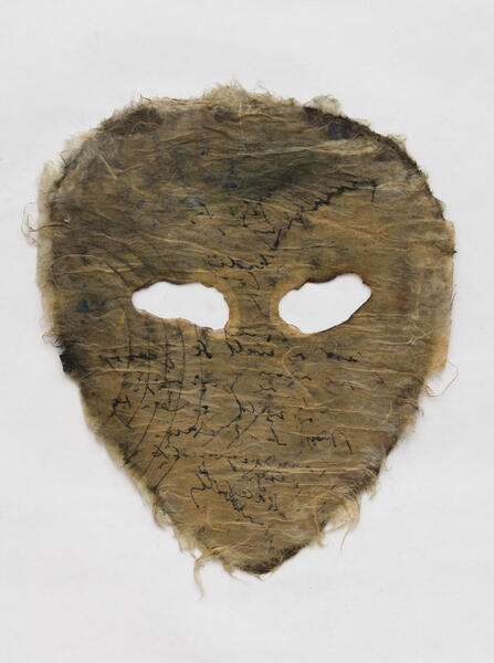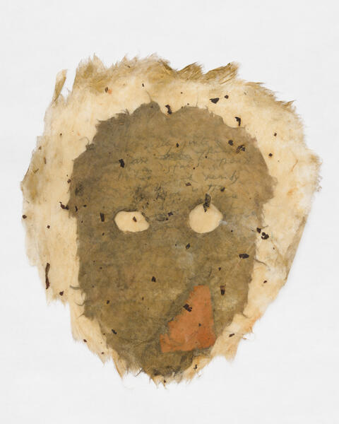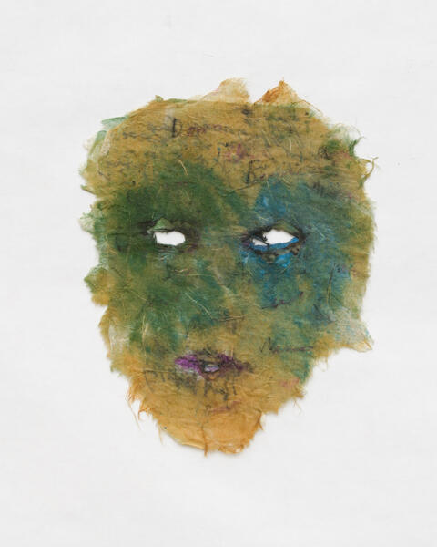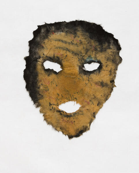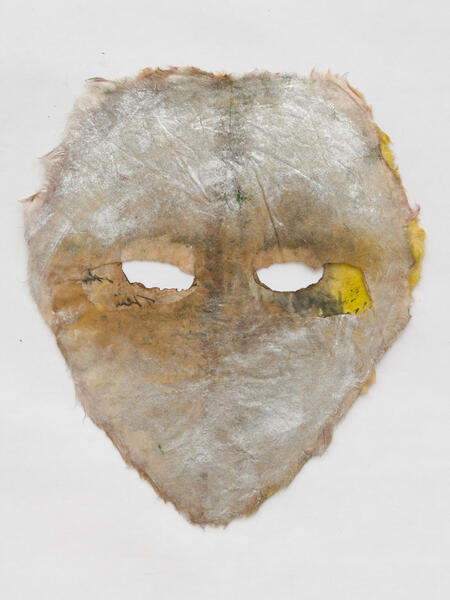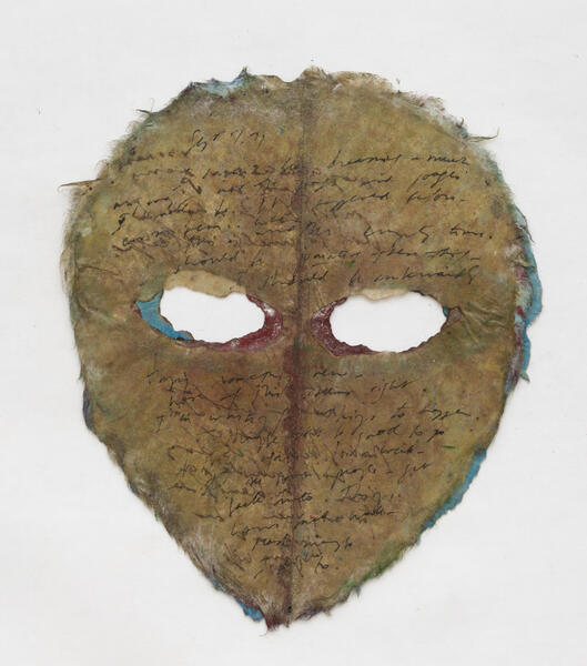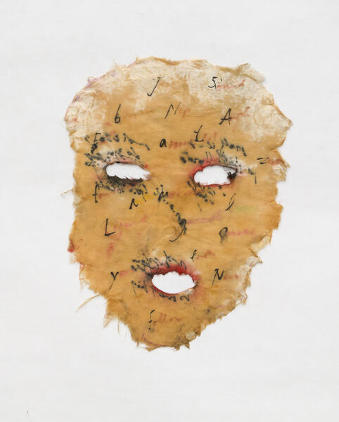 In relation to the conceptual and performance work of the feminist artists of the 1970s in the United States, Mira Schor created these masks that bear witness to the female experience and the way in which it is constructed through language and materiality.