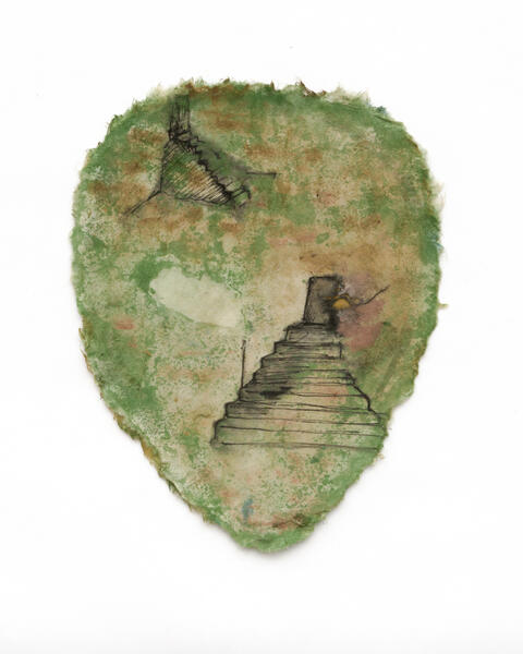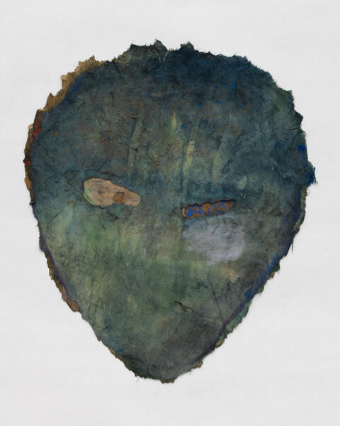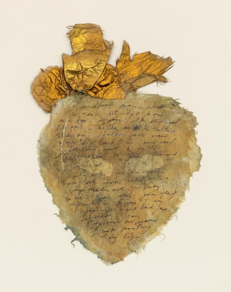 Dry pigment, ink, acrylic gel, and Japan Gold Size on rice paper