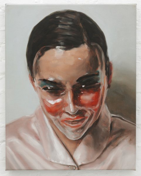 The unnerving weirdness of Michäel Borremans' Mombakkes I (Mask) lies in the tension between the figure's make-up, evoking the merriness of commedia dell'arte, to which the artist often refers, and the melancholy or even extreme loneliness betrayed by his features. The artist says he is not interested in painting portraits of reality but prefers masked figures to which he gives the dramatic character and role of his choice. He says his works are anonymous paintings of types: "When I paint men, they are never individuals. They are always symbolic versions.”