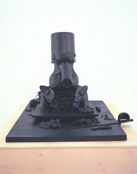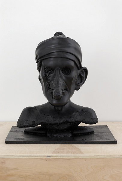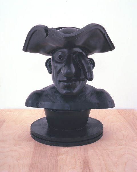 His sculpture Pirate Heads (2009) attacks the figure of the pirate, synonymous with pillaging and deceitful democracy. Five bronze heads called Captain Dick Hat, Dick Eye, Shit Face, Pot Head and Jack, compose a parody of the obsession with the power and dominance of America, in both military and sexual terms (two major themes of his work). The sculpture, designed at the time of the invasion of Iraq, plays with notions of virility and masculinity.