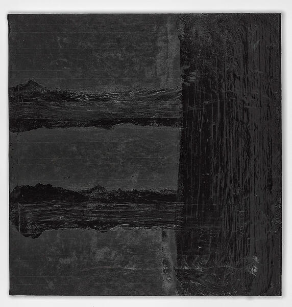Theaster Gates' art is an expression of his civil rights activism, denouncing the inequality and injustice that plague American society. This work is in a more intimate vein while maintaining the coherence of his refined aesthetics. The technique and materials directly refer to his father's former profession as a roofer. The work belongs to a series of similar large pieces. Its composition and the effects of its materials recall the manner of Pierre Soulages or lyrical abstract expressionism.