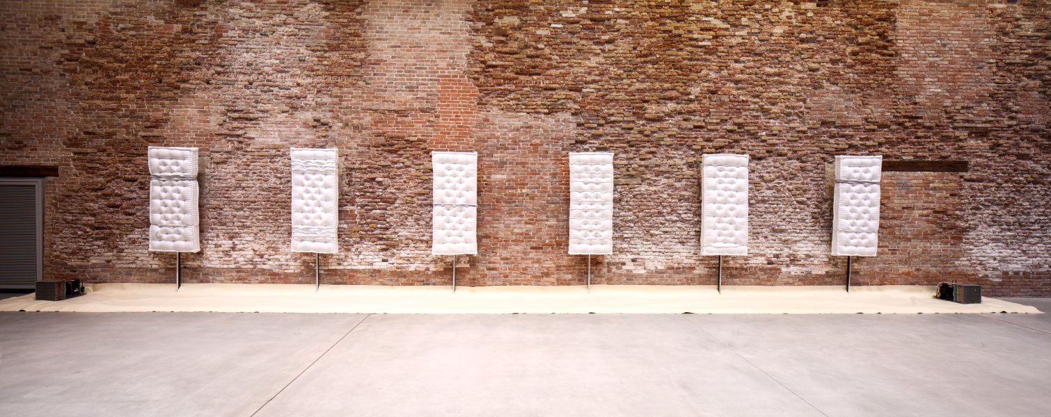 The installation Senza titolo (Materassi) by Pier Paolo Calzolari was first presented by the Pinault Collection at the “Accrochage” (“Hanging”) exhibition at the Punta della Dogana in Venice.