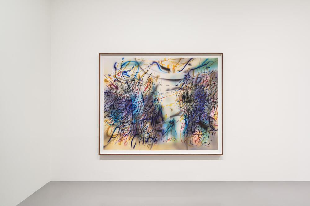 Since the mid-2010s, Mehretu has worked with several leading print studios to push the technical boundaries of what is possible, for example by increasing the number of press runs to create unprecedented overlays of forms and effects. The subtitles of the four works refer to the broken seals in the biblical Book of Revelation, evoking the current era of upheaval marked by a global pandemic, police violence, and the resurgence of authoritarian forms of fascism. This constellation of gestures and forms—whose relationships appear indeterminate and uncertain—metabolizes and interrogates the world’s violence, offering instead a third, suspended space, an "in-between" marked by the possibility of something else.
