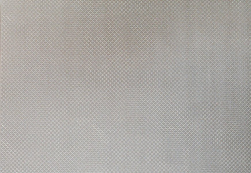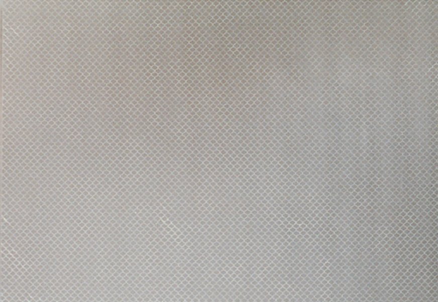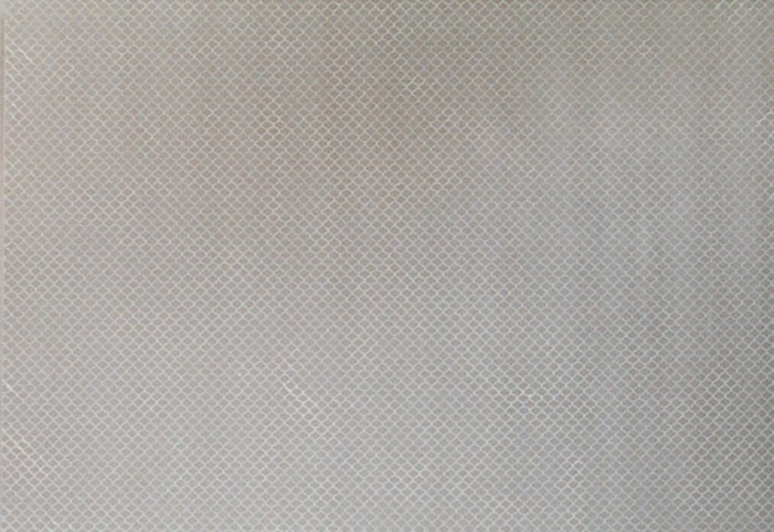 Rudolf Stingel's triptych Untitled realistically reproduces the pattern and shininess of a metal fence. Despite its frontality and smoothness, the painting’s silvery strokes suggest a striking depth.