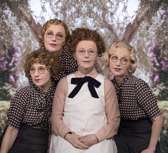 Cindy Sherman impersonates four different characters in Untitled, 2016. It belongs to a 2016 series of large-format photographs of flappers, observing the codes of conventional photographic portraits.