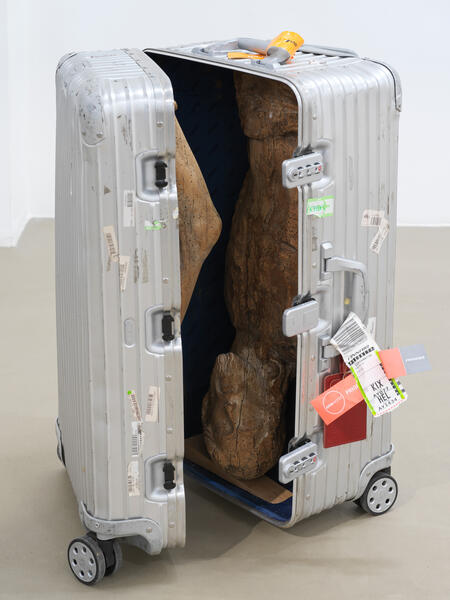The worl untitled (2020), is a suitcase housing fragments of a religious sculpture, reminiscent of the small icons taken as souvenirs of travel, of war, or of pilgrimages across borders. These work of Danh Vo invite us, beyond the heartbreak of individual or collective history, to a common consciousness turned toward a possible future