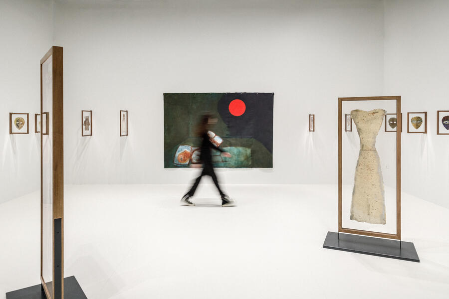 This first-ever exhibition in France features works on rice paper made by Schor in the second half of the 1970s along with a recent painting made in 2022. With their fragile, solitary presence, the masks and dresses are covered with highly personal, handwritten texts about her dreams and her interpretations of them, along with reflections on the Holocaust, to which she lost some of her family, and political writings.