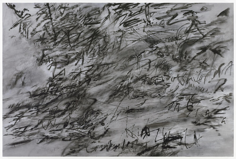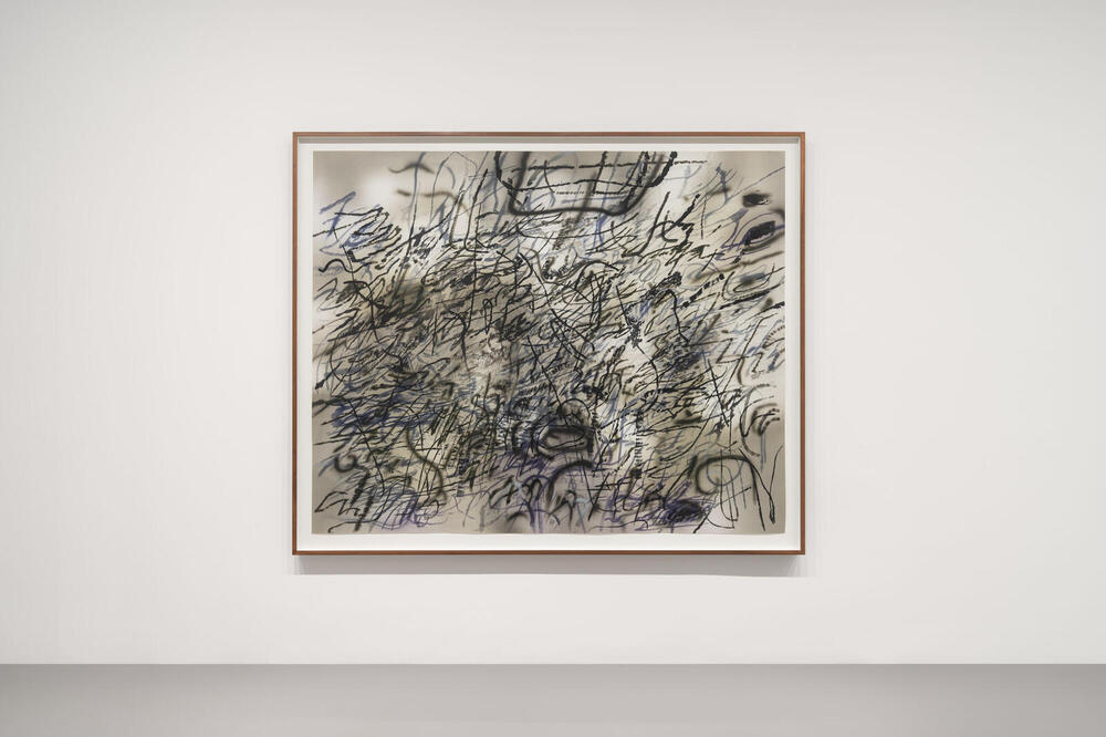 Julie Mehretu, Your hands are like two shovels, digging in me (sphinx), 2021-2022, Courtesy of the artist and White Cube. Installation view, “Julie Mehretu. Ensemble”, 2024, Palazzo Grassi, Venezia. Ph. Marco Cappelletti © Palazzo Grassi, Pinault Collection