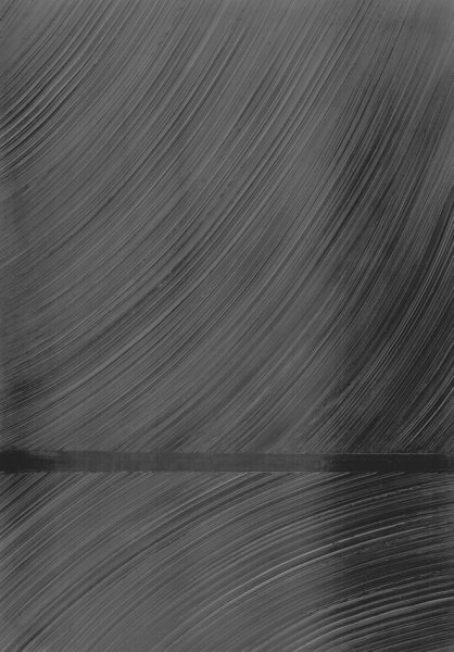 De larges stries de peinture noire recouvrent l’entièreté de la toile, créant une surface dont les reliefs permettent à la lumière de réfléchir. Dans 21 octobre 1988, Pierre Soulages insuffle deux mouvements complémentaires à la peinture : aux stries concaves de la partie basse répondent, séparées d’un aplat horizontal, les stries convexes de la partie haute. En résulte un puissant dynamisme, happant la lumière pour mieux la redistribuer.