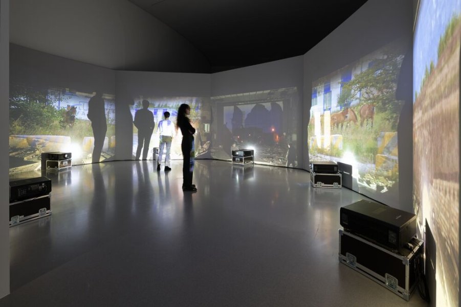 Projetant simultanément sur quatre murs des images du site de Pripyat, la ville-dortoir de Tchernobyl abandonnée à la suite de la catastrophe nucléaire de 1986, auxquelles se superposent d’autres vidéos de faune en filigrane, l’œuvre immersive Chernobyl porte le thème d’un cataclysme de la main de l’homme et interroge l’impact sur son environnement naturel.