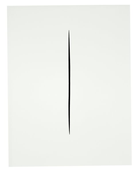 Une grande toile blanche est fendue d’une ligne verticale. Telle est la seule intervention de l’artiste. Par ce geste à la fois simple et symbolique, Lucio Fontana immortalise un moment éphémère. En résulte une œuvre remarquable, conjuguant violence et sérénité, fugacité et éternité, plein et vide.