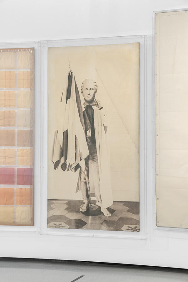 L’incident perceptif prend sens au regard du titre de l’œuvre. Distinct de l’esprit de géométrie, l’esprit de finesse est en effet cité par le mathématicien et philosophe Pascal dans ses Pensées (1670). Ses principes « sont dans l’usage commun et devant les yeux de tout le monde », mais « si déliés et en si grand nombre qu’il est presque impossible qu’il n’en échappe ». Giulio Paolini nous invite par son œuvre à prendre conscience de notre environnement et des forces invisibles qui le sous-tendent.
