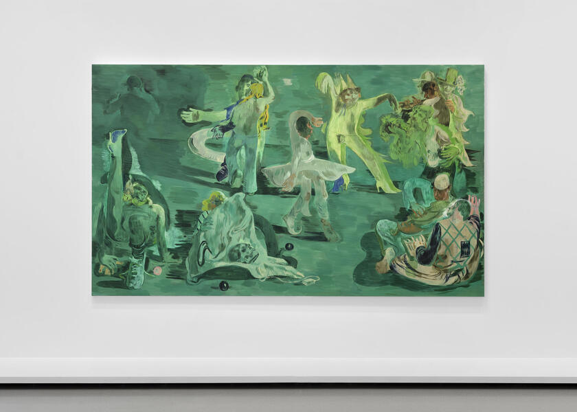 Salman Toor peint des mises en scène de personnages (arlequins, clowns tristes, marionnettes) entre comédie et rêve, parsemées de références à l’histoire de l’art occidental. Il les dote d’une tonalité contemporaine et queer, à rebours du contexte généralement homophobe dans lequel il a grandi au Pakistan.