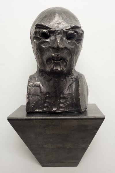 Plus récemment, le genre du portrait lui a permis d’aborder des thèmes comme l’aliénation, le conflit, l’isolement ou la vulnérabilité, à l’image de la sculpture Head-Wicht (2006). Cette tête en céramique et acier, aux yeux saillants, imparfaite, menaçante, explore le potentiel expressif de la physionomie. De quelle contrainte cette sculpture, dont le titre signifie littéralement « Tête-poids », souffre-t-elle ? Peut-être celui de l'objet décoratif dont elle se rapproche par son traitement particulièrement stylisé.