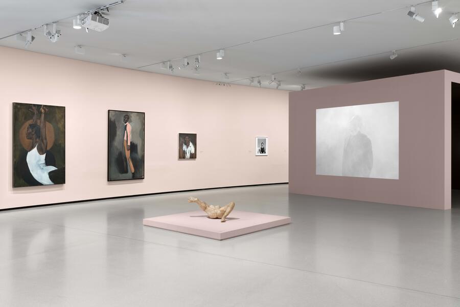 Les poses, les couleurs, la facture générale laissent affleurer les citations chères à l’artiste : on y perçoit les peintres Manet, Degas, Goya, Velasquez… Se concentrant exclusivement sur des figures noires, Lynette Yiadom‑Boakye interroge leur statut dans l’histoire de l’art, autant qu’elle questionne la notion même de portrait, placée ici dans une tension entre invention et réalisme.