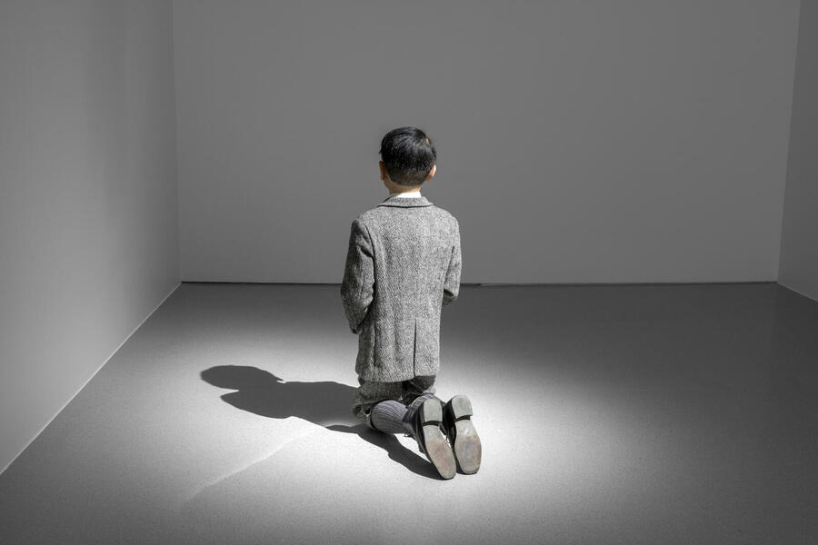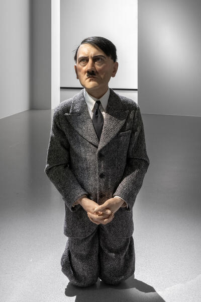 Cette sculpture propose une forte expérience scénographique et éthique au spectateur. S'approchant par derrière, ce dernier aperçoit une silhouette d'enfant agenouillé. En faisant le tour, il tombe face-à-face avec Adolf Hitler qui semble en proie à une crise spirituelle. Représentant ce symbole suprême du mal sous une forme inoffensive, l'artiste nous incite à interroger l'humanité du personnage, et finalement l'humanité tout court. « Hitler est partout, il hante le spectre de l'histoire ; pourtant il est innommable, non reproductible, enveloppé d'une couverture de silence. […] Je veux juste que cette image devienne un espace de discussion ou un test de nos psychoses », avance-t-il.