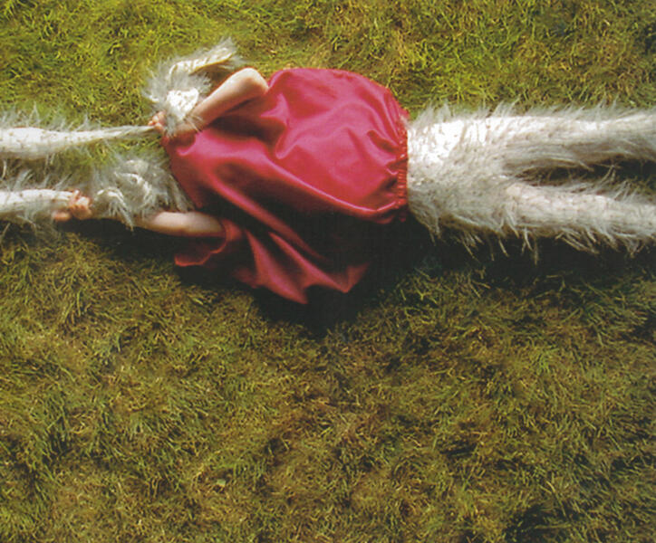 Anna Gaskell s’inspire de la figure de Peau d’Âne pour créer ce personnage hybride, dont le visage est masqué par une capuche rouge. Cette créature mi-femme mi-animal adopte une démarche étrange qui trouble et transforme le souvenir d’enfance du spectateur. Celui-ci est frappé par la brutalité des émotions humaines.