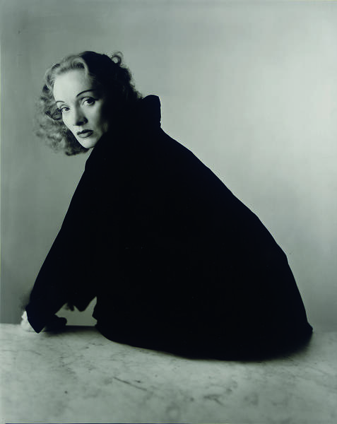 Dans ce portrait, le photographe met en scène une icône mythique du 20ème siècle, Marlene Dietrich (1901-1992). Actrice et chanteuse hors pair, femme fatale, muse des plus grands couturiers, engagée auprès des forces américaines pendant la Seconde Guerre Mondiale, Marlene Dietrich était une femme puissante qui mena sa vie et sa carrière d'une main de fer. Elle fut révélée par le film L'Ange Bleu (1930) de Josef von Sternberg, avec qui elle collabora sur huit autres films. C'est ainsi qu'elle fut contactée par le Paramount et partit à Hollywood afin de poursuivre sa carrière en Amérique. Elle tourna avec les plus grands réalisateurs de son époque : Orson Welles (La Soif du Mal), Alfred Hitchcock (Le Grand Alibi), Fritz Lang (L'ange des Maudits), René Clair (La Belle Ensorceleuse) etc. Ce portrait, d'une sobriété déconcertante, montre l'actrice de légende sans fard ni fioriture, seul son visage se détache sur sa grande cape noire. Une certaine intimité émane de ce cliché où Marlène Dietrich révèle la fragilité humaine en dehors de toute expression surjouée.