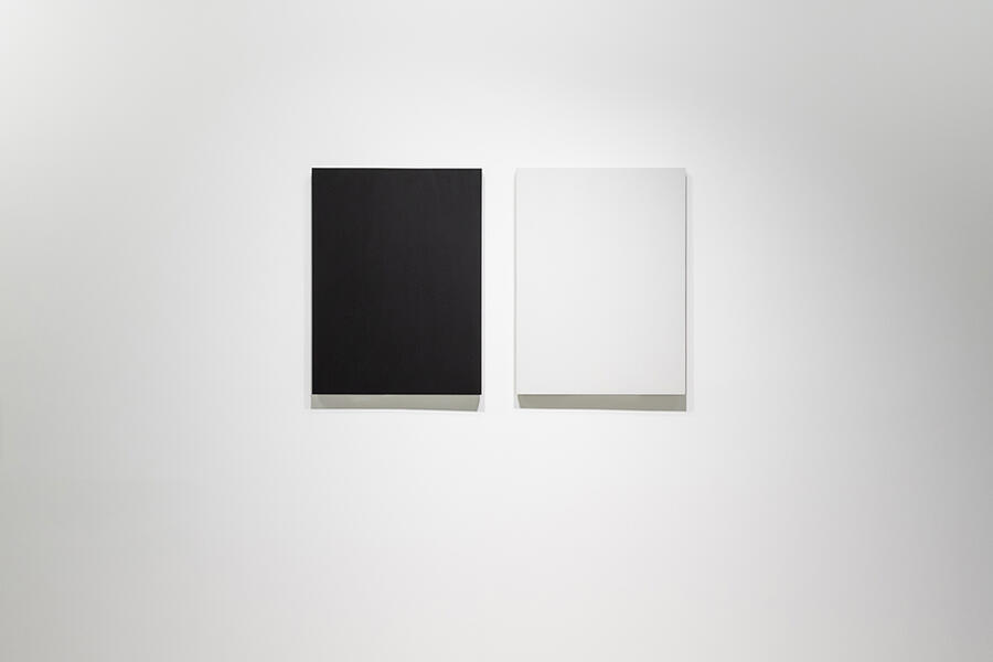 Ici, l’artiste s'inscrit dans l'héritage d'Yves Klein avec une audace singulière à travers ces deux panneaux noir et blanc.