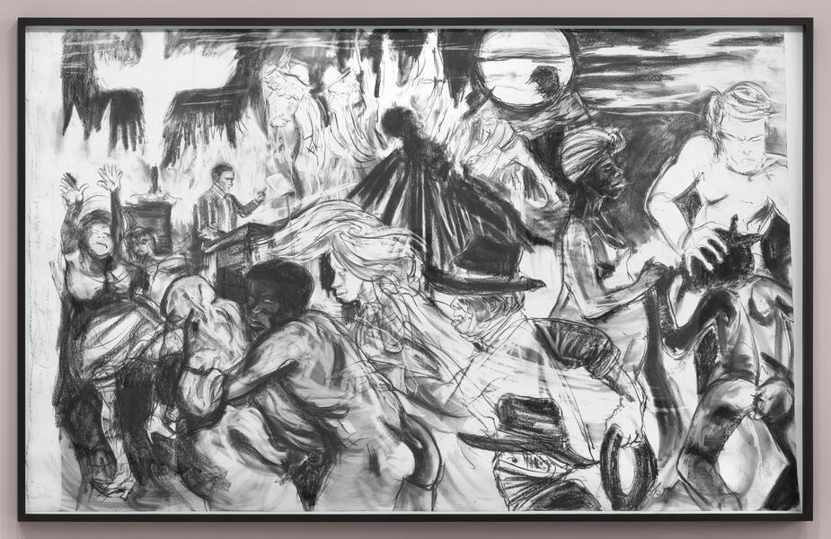 Ce grand dessin, dont le titre peut être traduit en français par « L’arc moral de l’histoire s’infléchit idéalement vers la justice mais il ne tarde pas à se retourner vers la barbarie, le sadisme et le chaos effréné », agit comme une épopée macabre, en raccourci, des africains-américains : de la déportation esclavagiste et des crimes qui s’ensuivent, jusqu’au meurtre et au viol, puis, aux méfaits de la société ségrégationniste et des lynchages orchestrés par le Ku Klux Klan, société secrète terroriste suprémaciste blanche. Au fond, la figure de l’ancien président Barack Obama, adressant dans son célèbre discours A More Perfect Union (« Une union plus parfaite ») en 2008, peu de temps avant son élection la complexité de cette histoire dont il est lui-même un reflet. Au caractère non-fini du dessin s’associe la brutalité des faits historiques. L’exposition de ce dessin créa une vive polémique aux États-Unis, jusqu’au sein de la communauté artistique africaine-américaine.