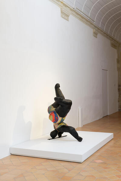 Dans l’œuvre de Niki de Saint Phalle, la résistance à l’assujettissement des femmes rejoint la lutte des minorités afro-américaines, victimes de la violence inhérente à la société américaine. Nana Noire (1965) est l’une des premières « Nanas » noires réalisées par Niki de Saint Phalle, après Black Rosy (ou Mon coeur appartient à Rosy, 1965), également faite de tissu et de laine, et montée sur grillage. Nana noire, comme Black Rosy, est sans doute – même si son appellation plus générique ne l’atteste pas – une référence à Rosa Parks, figure emblématique du combat contre le racisme aux États-Unis. La Nana Noire conjugue combat antiraciste et lutte antisexiste en affirmant sa place dans l’espace par ses formes généreuses, voire monumentales, sa position acrobatique la tête en bas, et la gaieté des couleurs de son vêtement. En 1965, la manifestation historique conduite par Martin Luther King en Alabama et l’adoption du Voting Right Act au mois d’août garantissent le droit de vote à tous les citoyens américains. L’apparition, l’année suivante, du mouvement du « Black Power », inspire à Niki de Saint Phall le titre « Les Nanas au pouvoir » pour son exposition au Stedelijk Museum d’Amsterdam.