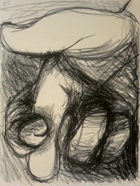Occupant tout l’espace d’une feuille blanche, une large main aux doigts épais réalise une étrange chorégraphie dans un clair-obscur prononcé.