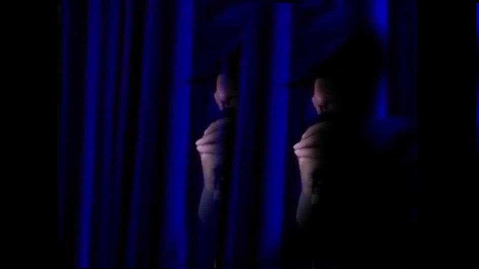 PLEASE (LC) est une installation qui se compose d'un même extrait de vidéo projeté successivement sur quatre grands écrans disposés les uns à côté des autres.