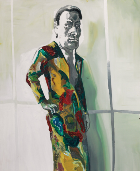 En 1996, Martin Kippenberger, figure de proue de la nouvelle peinture allemande depuis les années 1980, réalise une série qu’il baptise Window Shopping bis 2 Uhr nachts (« Lèche-vitrine jusqu’à 2 heures du matin », en français) et qui compte parmi ses dernières peintures. Conçues pour une exposition dans sa galerie de Vienne, les peintures rassemblent des portraits, parfois semi dénudés, des fragments de corps, ainsi qu’un autoportrait de l’artiste portant un kimono coloré.