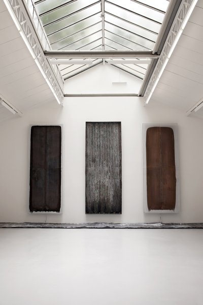 La verticalité et les lumières tremblotantes des bougies de ce monumental triptyque inspirent d’emblée un profond sentiment de sacralité. Or le titre de ces trois pièces de métal – cuivre, fer et plomb –, Untitled (Iron pall - Tealights - Copper pall) ne laisse planer aucun doute : évocation directe des retables religieux vénitiens, cette installation ambitieuse est originellement une commande publique pour l’ornementation d’une église.