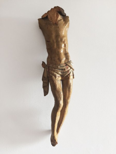 Avec "You're gonna die up there / Keep away! The sow is mine / Fuck me" (citation tirée du film L’Exorciste), l’artiste présente un Christ crucifié, image incontournable de l’iconographie chrétienne. Cette œuvre fait suite aux recherches qu’il a effectuées à propos de l’évangélisation des pays non chrétiens en Asie du Sud-Est, notamment au Vietnam, où il est né. Danh Vo a pour coutume, dans certains aspects de sa pratique artistique, d’acquérir des sculptures religieuses sur lesquelles il intervient. Ici, il en retire les bras, la tête, et la croix qui supporte le Christ. Ainsi, comme dans We the people (detail), également conservée au sein de la Collection Pinault, l’artiste ne nous offre qu’un fragment d’objet, suggérant les effets de la colonisation et les changements culturels qu’elle a impliqués.